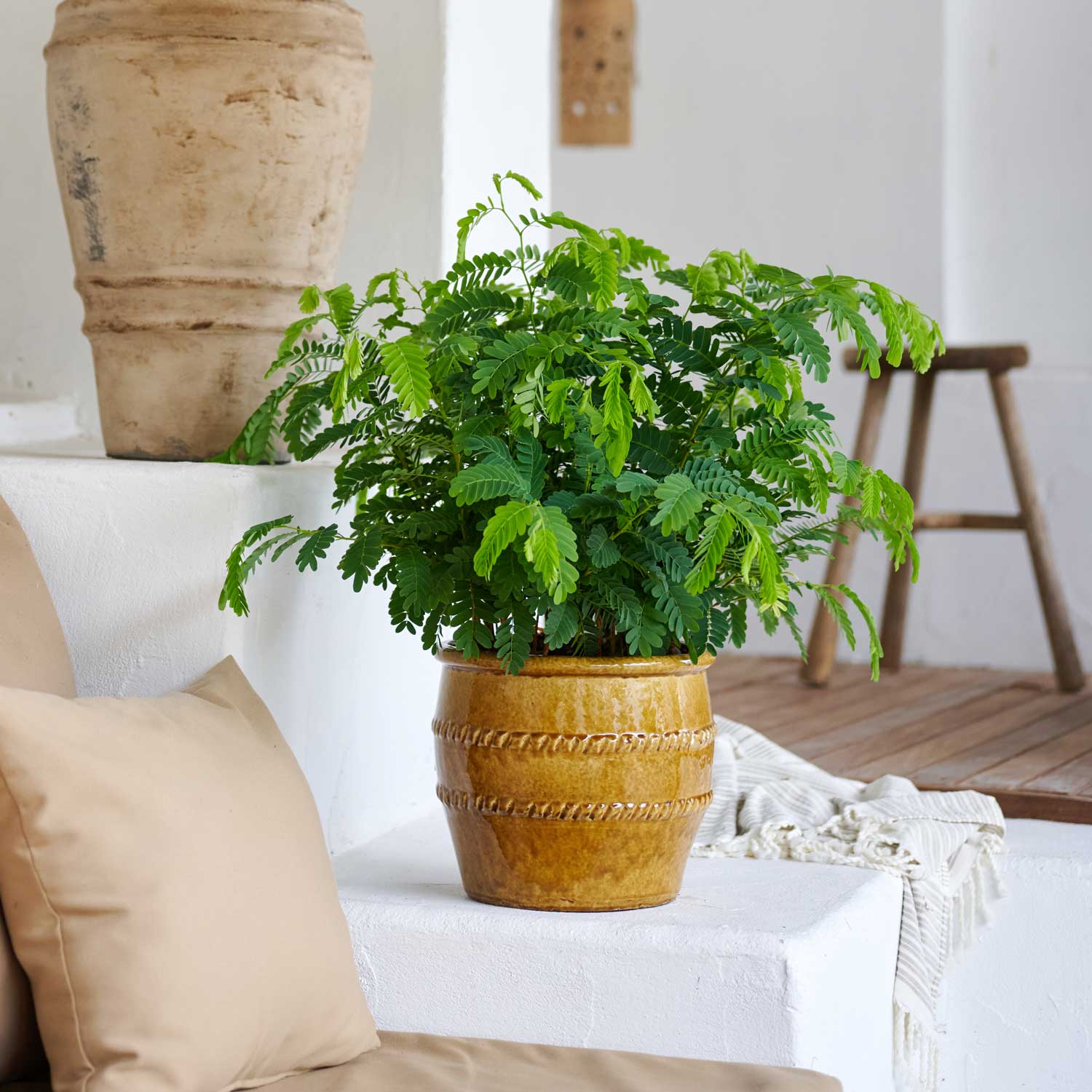 De Tamarinde plant is een bijzondere kamerplant met een tropische uitstraling en fijn geveerd blad. Deze soort is van oorsprong afkomstig uit tropisch Oost-Afrika en heeft zich van daaruit verspreid naar warme regio’s zoals India en Zuidoost-Azië. In zijn natuurlijke leefomgeving groeit de Tamarindus Indica uit tot een imposante boom die meer dan twintig meter hoog kan worden. Als kamerplant blijft hij gelukkig een stuk kleiner. Binnenshuis kan hij tot 2 meter hoog worden. Door zijn verfijnde bladstructuur en rustige groei past deze plant goed in lichte woonruimtes. Deze tamarinde plant wordt door Ten Have Plant gekweekt als kamerplant en past bij liefhebbers van bijzondere groenblijvende soorten.
